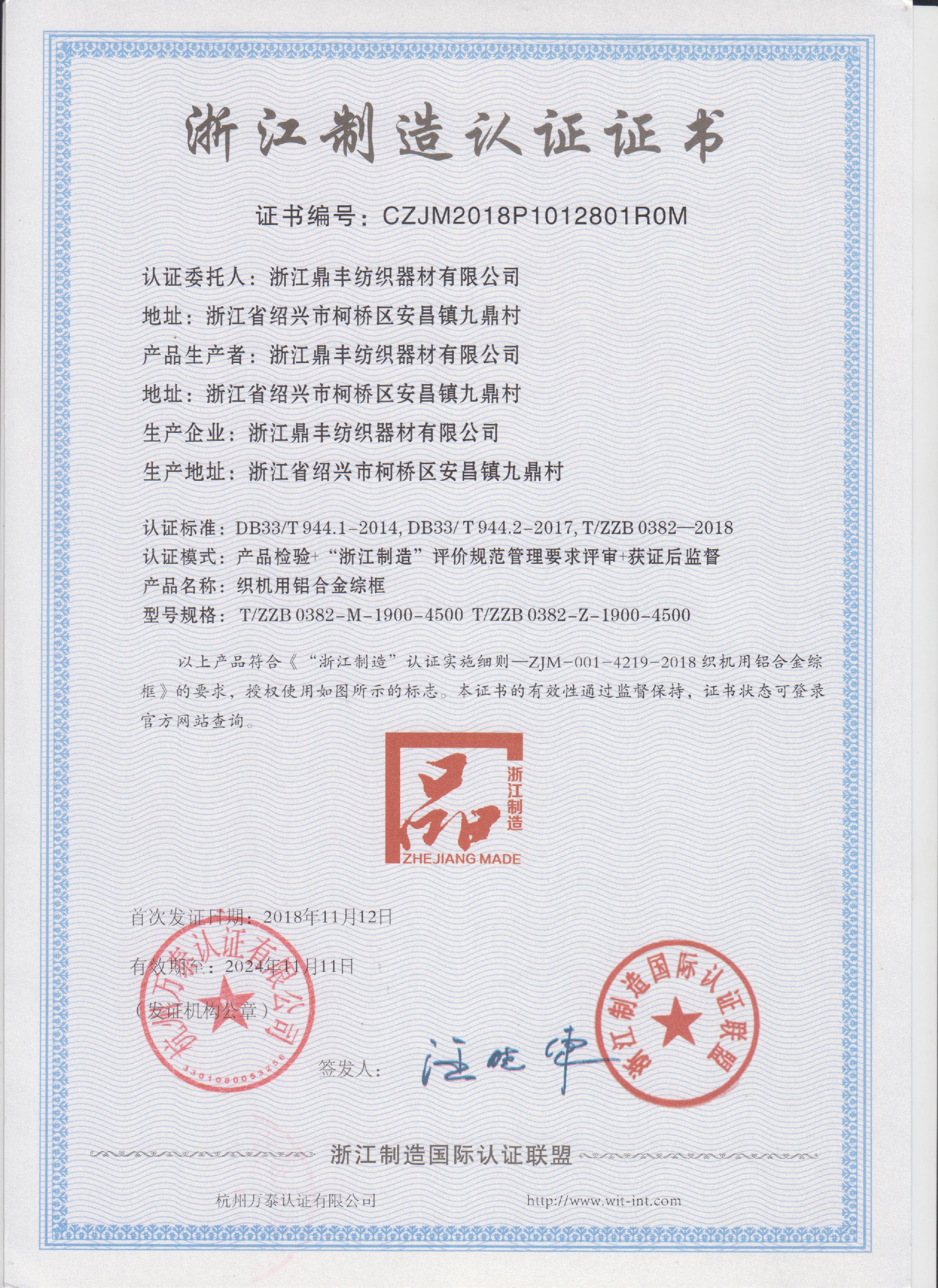 1、貴公司是一家專業生產各類無梭織機鋁合金鋼筘、綜框、鋼片綜、停經片、經軸、織軸和卷布輥等產品及配件的民營企業。公司成立30多年迅速發展、占領市場的秘決是什么?余定雅:是高品質的產品,完善的售后服務和大規模的生產能力保證了浙江鼎豐紡織器材有限公司的產品銷售量在國內獨占鰲頭。為了與全球市場經濟接軌,鼎豐紡